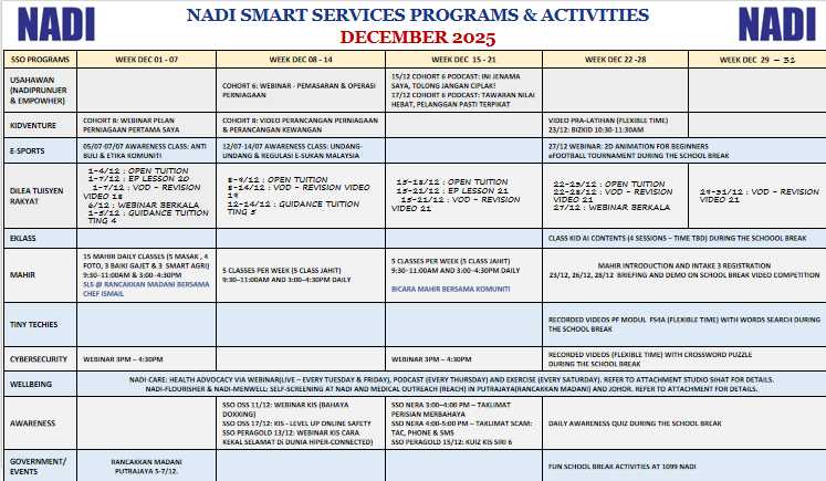 Jadual Aktiviti Bulan Disember 2025